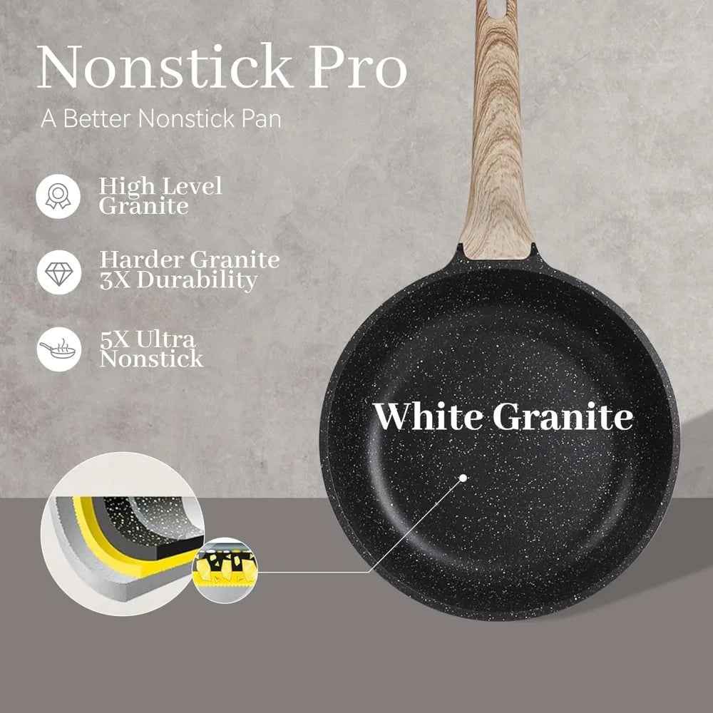 - ★ Effortless Cooking with Ultra Nonstick Granite Coating - Enjoy smooth, mess-free cooking with our premium nonstick granite surface. Food slides right off—no sticking, no scraping—making cleanup a breeze. Plus, it's 100% free of PFOS and PFOA, giving you a safer, healthier way to cook your favorite dishes without harmful chemicals.