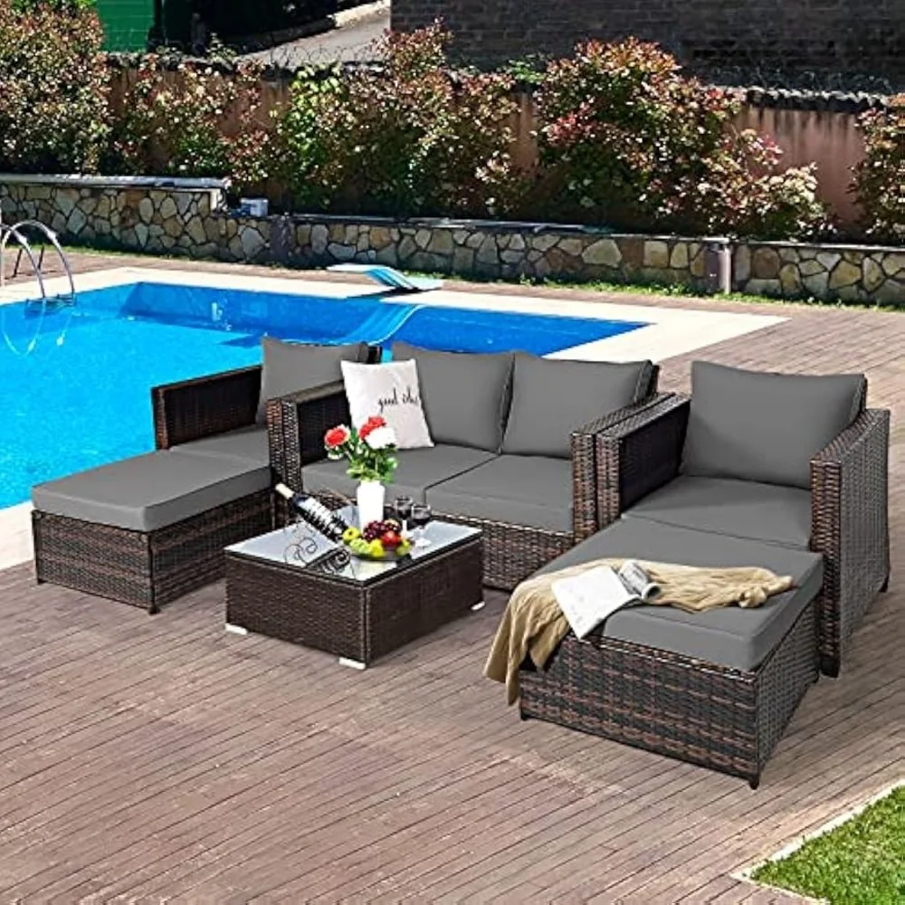 - Sectional Patio Furniture Set: Our patio furniture set includes 1 loveseat, 2 single sofas and 2 ottomans, which allows you to arrange it into different combinations or use it separately. You can adjust the combination flexibly based on your needs and room space. The ottoman can serve as a coffee table after removing the cushion.
