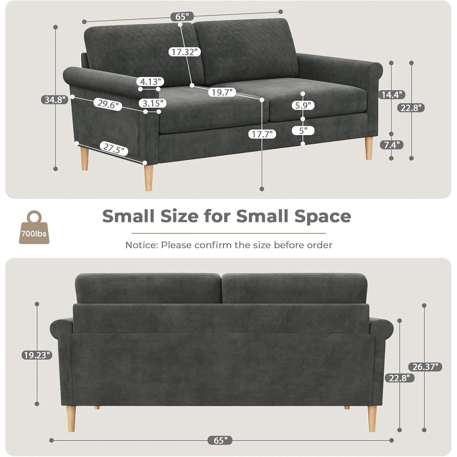 【Versatile and Space-Saving】The 2-Seat Loveseat (65" W x 29.5" D x 34.8" H) embraces mid-century modern design. Ideal for small apartments and cozy corners, its compact size fits seamlessly into any area while maximizing seating. Enhance your space with this functional and stylish loveseat, designed to make a statement and optimize your living area.