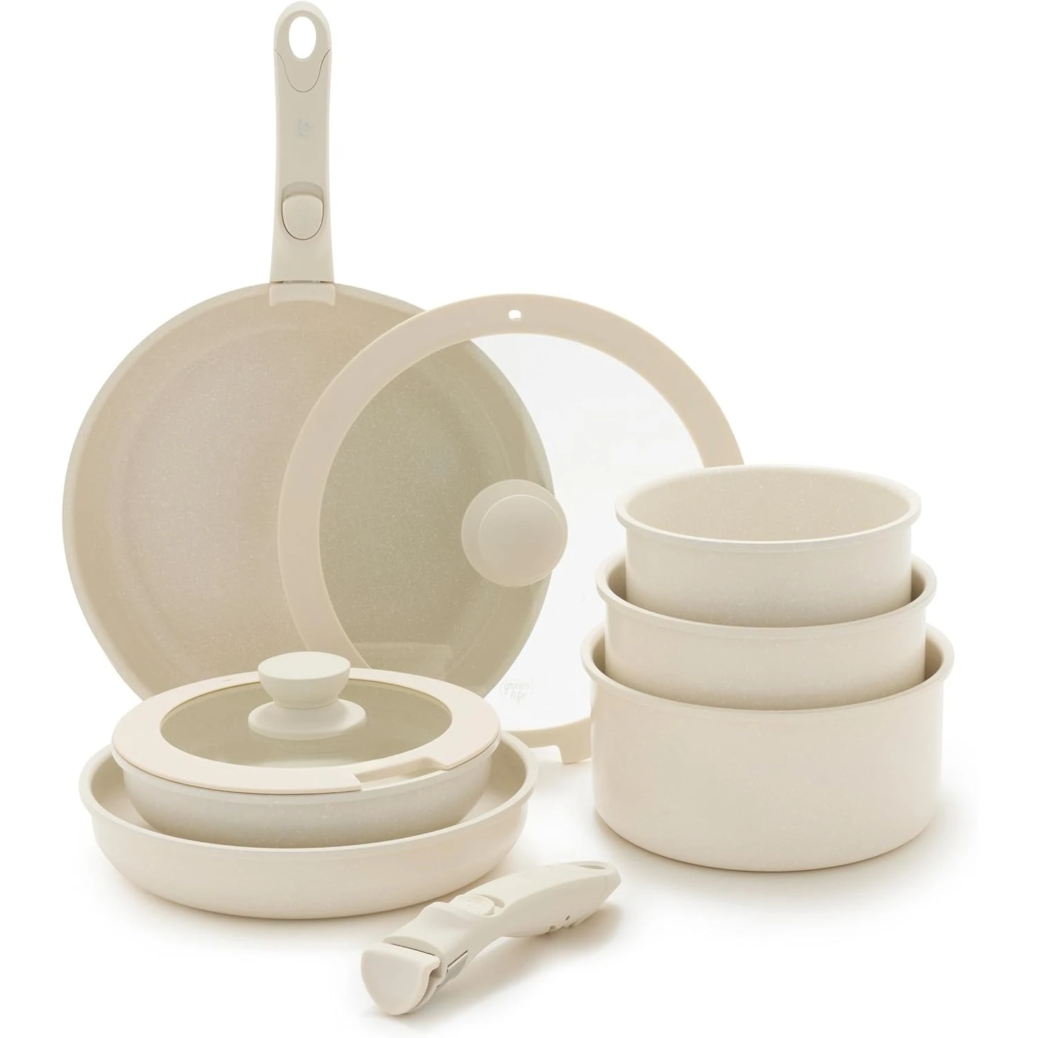 Click 10-Piece Ceramic Nonstick Cookware Set, Detachable Handle, Stackable Space Saving Kitchen Essential