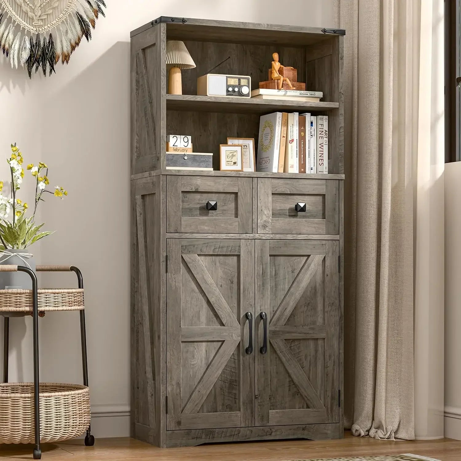 - 【Durable Construction for Lasting Quality】This cabinet showcases farmhouse-inspired elegance with decorative angle iron on the top board, adding rustic charm and visual appeal. The sturdy build and rustic details make this piece a beautiful focal point in any room, blending style with practical functionality.