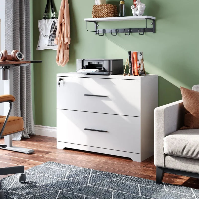 The GALAXHERO Lateral File Cabinet combines modern style with function, featuring 2 spacious drawers for legal and letter-size files. Its wide top holds printers or decor, while the anti-tilt system adds safety. Full-extension slides ensure easy access, and the eco-friendly board resists scratches. A lock secures the top drawer for privacy. Built to hold up to 220 lbs, it’s ideal for home offices seeking organized, secure storage.