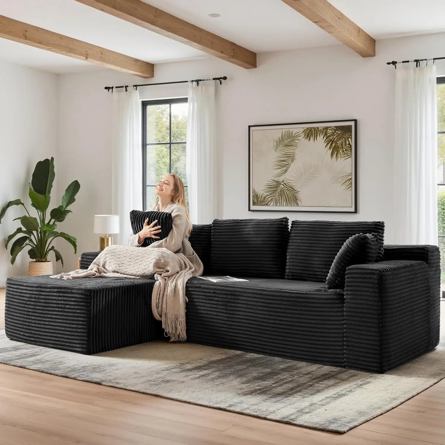 - Versatile Living Room Sofa: perfect addition to any space, including living rooms, apartments, bedrooms, guest rooms, and children’s play areas. This L-shaped couch features a modular design, making it easy to navigate through narrow hallways and tight doorways while maximizing space efficiency. Its luxurious surface is ideal for relaxation or play, offering both comfort and functionality for every corner of your home.