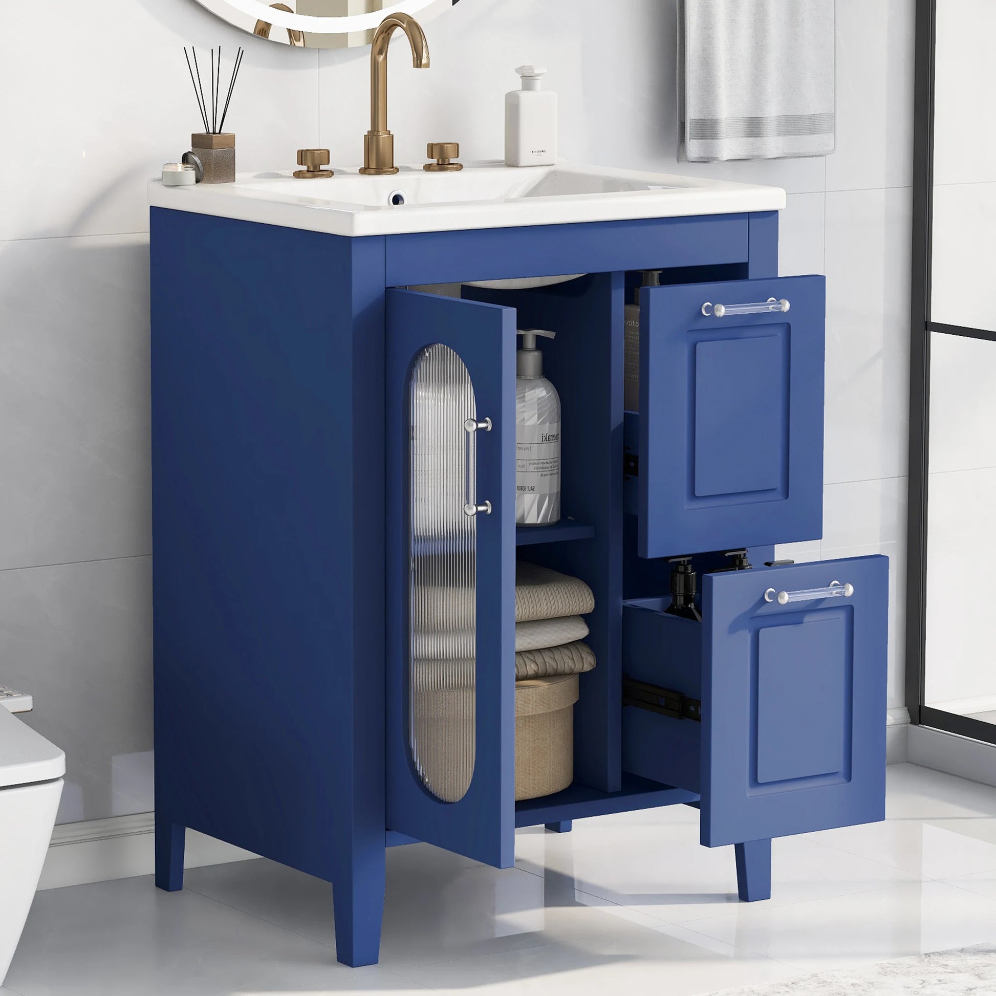 SH.KL 24 Inch Bathroom Vanity with Sink, Bathroom Vanity Cabinet, Solid Wood and MDF, Bathroom Furniture, Vanities