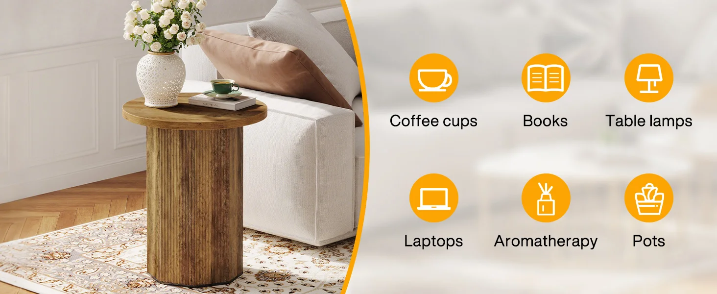 Sturdy Construction: It is made of premium MDF material, which is thick and solid, capable of stably supporting its own weight and the items placed on it. The bottom is equipped with non-slip pads to prevent the end table from sliding and ensure safe use